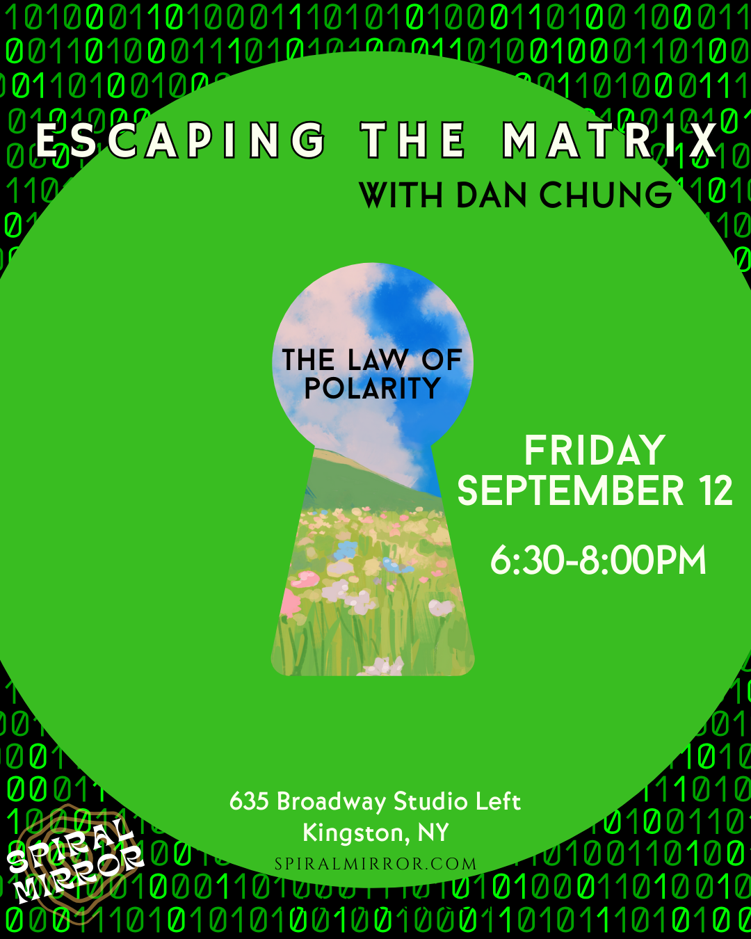 Reading about these laws builds an intellectual understanding of them. Escaping the Matrix though is a chosen and experiential path, so through a mix of exercises, meditation, and group connection, we will delve deeper into feeling and embodying these laws, as well as using them to liberate ourselves.