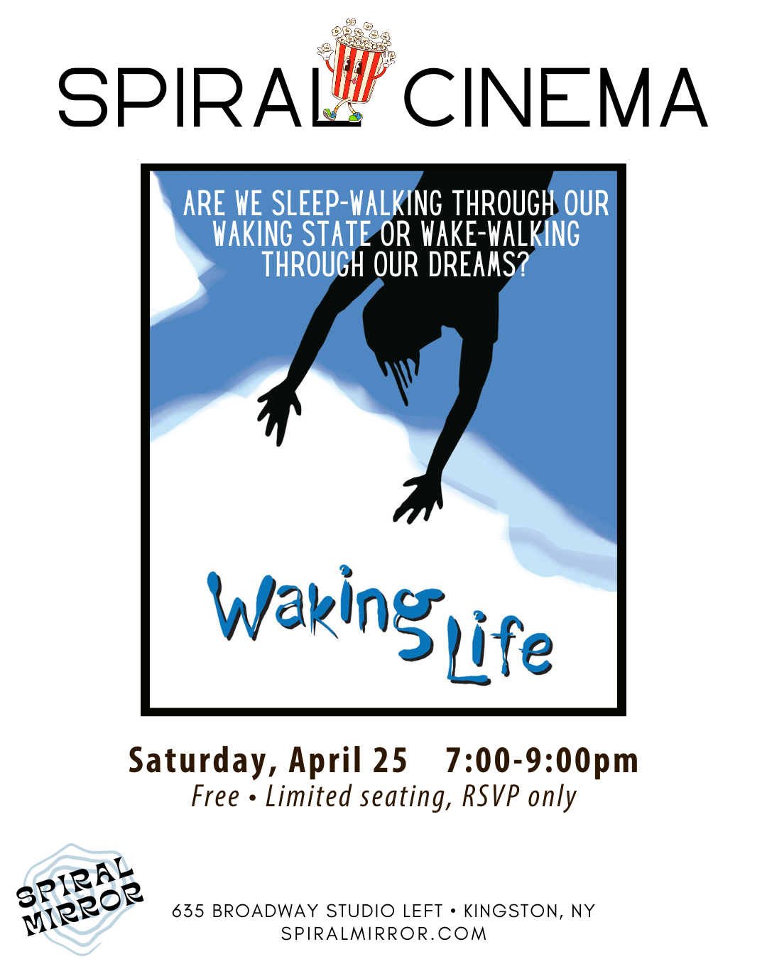 When Dan and Corinna met for the first time in 2015, by the end of the night, their conversation led to dreaming of putting on underground movie screenings. Spiral Cinema is that dream come to life: a series of movies that portray spiritual or metaphysical journeys.
