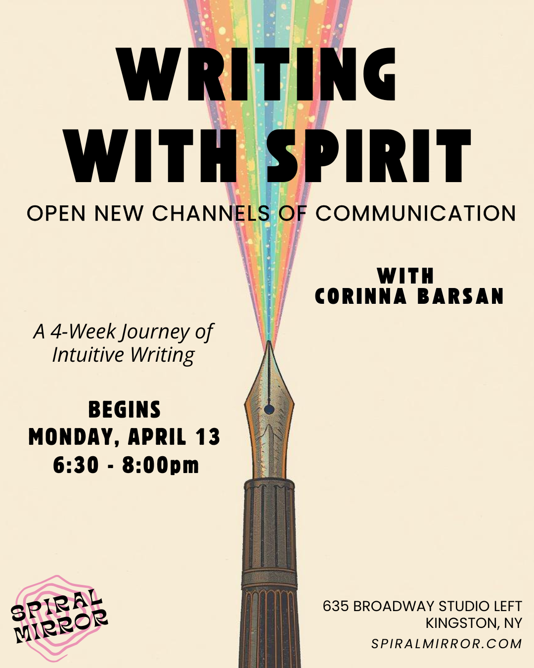 Four Weeks beginning (Moon-day) Monday, April 13th from 6:30 - 8pm